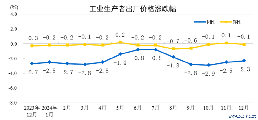 2024年12月份,全国PPI环比下降0.1%,同比下降2.3%,同比降幅比11月收窄0.2个百分点。