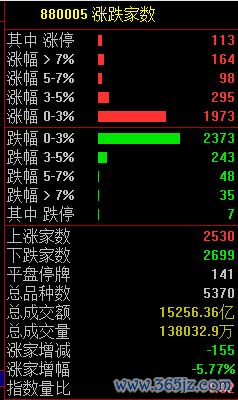 市场共2530只个股上涨,113只个股涨停,2699只个股下跌。