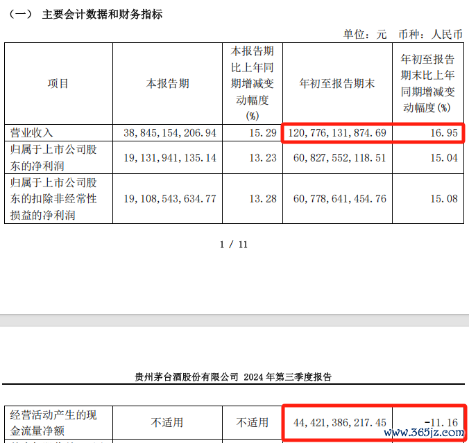 有投资者提问:“为何贵州茅台三季度经营活动产生的现金流量净额为444.21亿元,同比下降11.16%?”